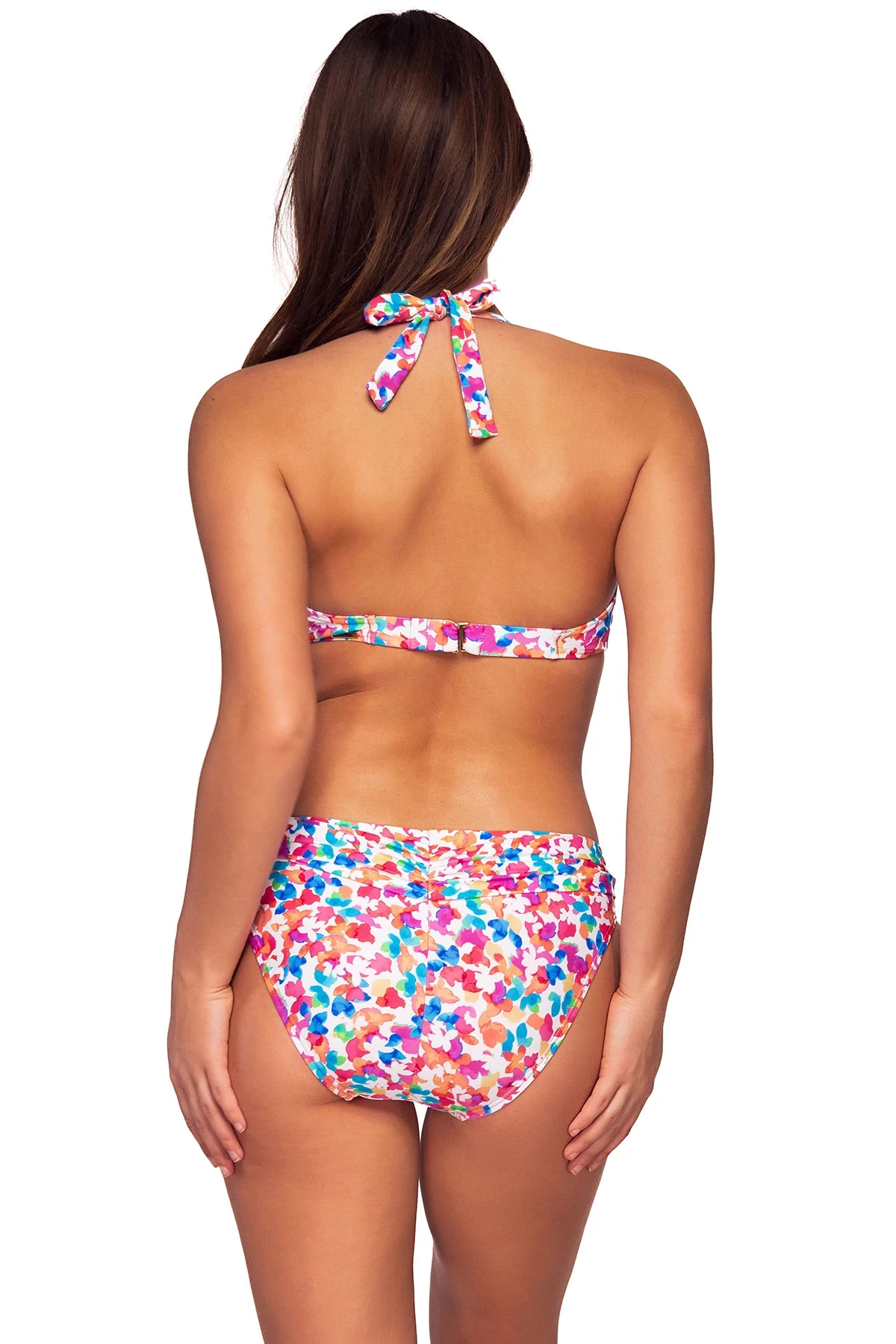 The sun won’t be the only thing shining this summer when you step out in the Muse Halter underwire. The figure flattering halter neckline enhances the natural bustline while the powermesh cups offer maximum support. Other features include removable cups, wide soft neck ties, underwire, back hook closure with three adjustments, and matching colored lining.